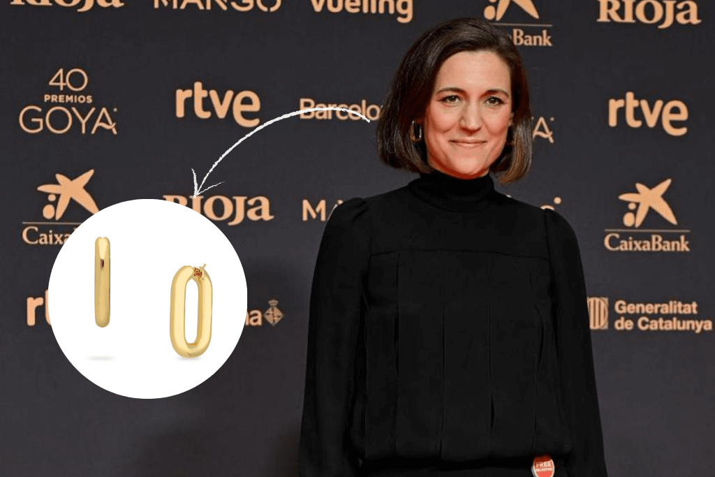 Con una amplia carrera como directora de cine y guionista, Carla Simón asistió a los premios Goya y qué mejor forma de hacerlo que con sus pendientes con un diseño de aro hechos en oro amarillo de 18k de Joyería Grau.