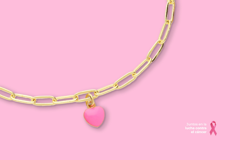 En esta ocasión, presentamos una pulsera de plata con eslabones tipo paper clip y un charm central esmaltado en rosa, color que simboliza la esperanza y la fuerza. Con ella, queremos aportar nuestro granito de arena para aquellas familias y personas que se encuentran en una situación en la que necesitan más que nunca esa fuerza y esperanza que representa nuestra pulsera.