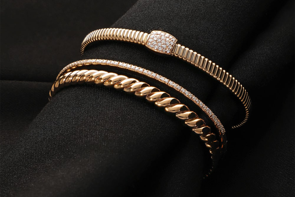 Finalmente, el panorama estilístico en 2026 se caracteriza por una gran dualidad. Por un lado, se observa un resurgimiento de la audacia y el maximalismo, impulsado por el deseo de autoexpresión después de años de estilos sutiles. Esto se traduce en la vuelta de las piezas llamativas como aros gigantes, brazaletes y puños esculturales, collares voluminosos, entre otros.
