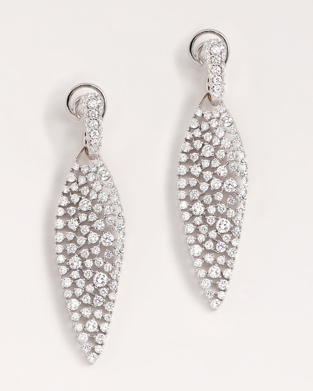 Long earrings in 18kt white gold with natural diamonds that descend like notes of brilliance, dancing with the light in every movement.