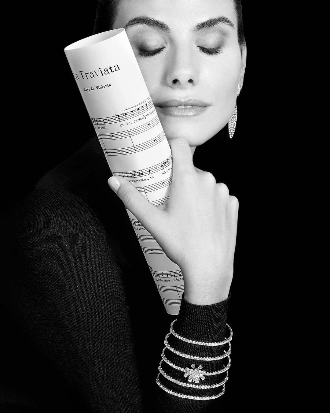 Let the melody of Serena Sáenz inspire you and elevate your style with the luminous harmony of Grau's High Jewelry, where each diamond plays a note of eternal elegance.